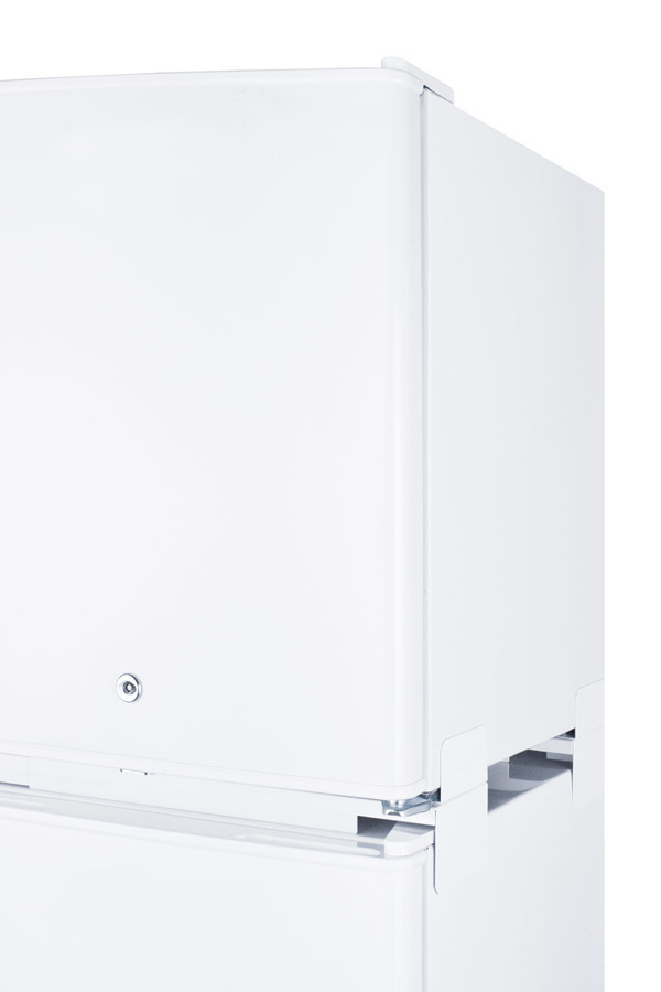 Two extendable brackets allow you to secure a freezer on top of a refrigerator for a stable fit