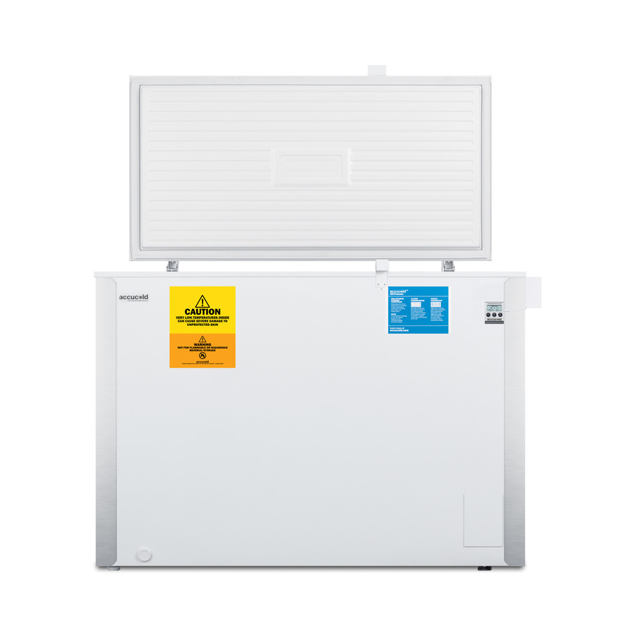 Accucold's VLT series includes user friendly chest and compact laboratory freezers capable of reaching -35º C (-31º F). The VLT850 is a chest freezer with 9 cu.ft. of storage capacity. Designed for optimum temperature performance, it can safely hold vaccines, pharmaceuticals, and even frozen foods under stable conditions with manual defrost operation. A digital thermostat includes easy electronic controls for precise temperature management and a battery-powered thermometer is installed to provide the most accurate temperature readout. The thermometer includes an audible alarm to warn of any high or low variations in temperature. Corner protectors help to protect the unit's exterior from bumps or dents and counterbalanced hinges provide an easy lift on the lid. A lock is included for added security. This unit is UL-S listed to NSF-7 and UL-471 commercial standards. NOTE: Accucold freezers are purpose-built to the support meeting the current CDC (Centers for Disease Control) guidelines for the storage of vaccines. As referenced in the current Vaccine Storage and Handling Toolkit, these units incorporate several key features for stable operation. For additional temperature assurance, the CDC recommends a calibrated digital data logger (DDL), which can be added with the factory-installed option DL2B or addition of the DL2BKit accessory. Select Accucold products have been tested and certified to the new NSF 456 standard, and are now available for purchase. For additional information, contact our products specialists.