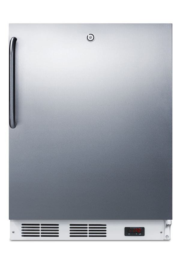 Accucold VT65M7BIADA series features commercially listed all-freezers designed for low temperature storage and sized for use under lower ADA compliant counters. The 32" high VT65ML7CSSADA can be used built-in or freestanding in any 24” space, with low temperature manual defrost operation that can reach -25ºC. The interior includes three slide-out basket drawers for convenient storage that keeps items cold when the door is opened. Additional features include an adjustable thermostat and one-piece interior liner for easier cleanup. This medical unit features a stainless steel wrapped cabinet and door. A curved towel bar handle completes the look and a factory installed lock offers added security. This unit is ETL-S listed to NSF-7 commercial standards. NOTE: ALL VT65M FREEZERS ARE DESIGNED FOR MEDICAL OR COMMERCIAL USE ONLY. THESE ARE NOT HOUSEHOLD FREEZERS.