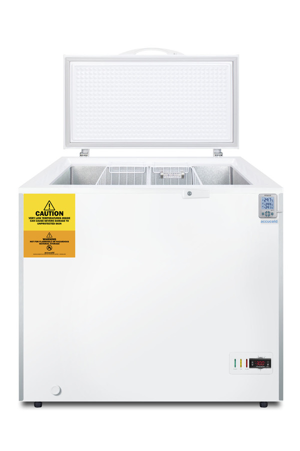 Accucold's low temperature laboratory series includes a range of chest freezers capable of operating at -30º C (-22º F). The VT73 is a manual defrost chest freezer with 6.7 cu.ft. of storage capacity designed to store laboratory and institutional materials at -30ºC. It includes a digital thermostat and high/low temperature alarm with an external temperature readout, calibrated to NIST standards in our ISO/IEC 17025:2017 accredited laboratory. We include a 2-year certificate of calibration for your records, as well as the option of re-calibrating your temperature probe at the time of its expiration. This freezer comes in a white finish with stainless steel bumpers pre-installed on the front corners for added protection in high traffic settings. The counterbalanced hinges allow you to keep the lid open when loading and unloading, with an easy grab handle and keyed lock included. The hammered aluminum interior includes two wire storage baskets. Additional sizes in our -30ºC series are available, as well as lower temperature options. Browse the complete Accucold lineup or contact our product specialists to best meet your cold storage equipment needs. NOTE: Accucold freezers are purpose-built to the support meeting the current CDC (Centers for Disease Control) guidelines for the storage of vaccines. As referenced in the current Vaccine Storage and Handling Toolkit, these units incorporate several key features for stable operation. For additional temperature assurance, the CDC recommends a calibrated digital data logger (DDL), which can be added with the factory-installed option DL2B or addition of the DL2BKit accessory. Select Accucold products have been tested and certified to the new NSF 456 standard, and are now available for purchase. For additional information, contact our products specialists.