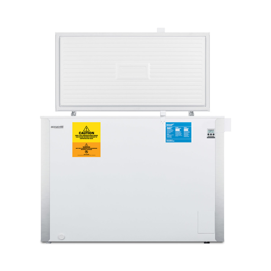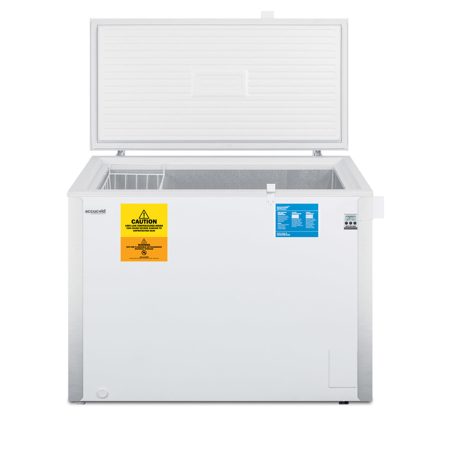 Accucold's low temperature laboratory series features fully featured freezers capable of reaching -30º C (-22º F). The VT85 is a chest freezer with 9 cu.ft. of storage capacity. Designed for optimum temperature performance, it can safely hold vaccines, pharmaceuticals, and even frozen foods under stable conditions with manual defrost operation. A digital thermostat includes easy electronic controls for precise temperature management and a NIST thermometer is installed to provide the most accurate temperature readout. The thermometer includes an audible alarm to warn of any high or low variations in temperature. Corner protectors help to protect the unit's exterior from bumps or dents and counterbalanced hinges provide an easy lift on the lid. A front lock is included for added security. This unit is UL-S listed to NSF-7 and UL-471 commercial standards. NOTE: Accucold freezers are purpose-built to the support meeting the current CDC (Centers for Disease Control) guidelines for the storage of vaccines. As referenced in the current Vaccine Storage and Handling Toolkit, these units incorporate several key features for stable operation. For additional temperature assurance, the CDC recommends a calibrated digital data logger (DDL), which can be added with the factory-installed option DL2B or addition of the DL2BKit accessory. Select Accucold products have been tested and certified to the new NSF 456 standard, and are now available for purchase. For additional information, contact our products specialists.